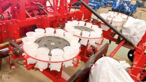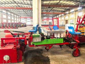Mint Transplanter driven by tractor will plant 4 row Mint seedlings effectively with uniform row spacing and plant spacing.